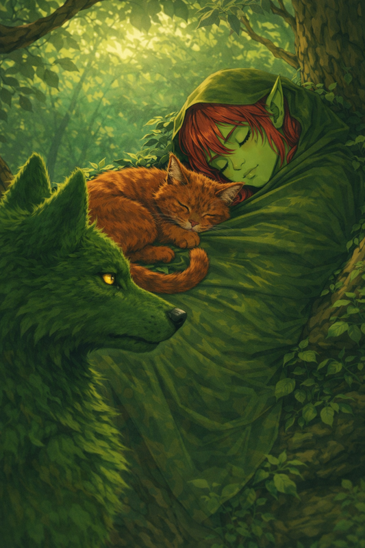 Ein verdammter Kater?! Was denkt sich Yllaria nur dabei, ein solches Vieh an sie heran zu lassen! Der kann sie nicht mal adäquat verteidigen, wenn es hart auf hart kommt! Außerdem haart er ganz übel! Garou saß in einem Busch und beobachtete Ylarria und dieses Ding, wie beide ganz vertraut zusammen schliefen. Anscheinend verschwendete keiner von beiden auch nur einen Gedanken daran, vorsichtig zu sein. Er hätte über Yllaria gewacht und auf sie aufgepasst. Garous Augen verengen sich, als der Neid und die Eifersucht durch ihn hindurch brodelte. Gut, dann passe ich eben auf. Aber wenn ein Habicht kommt und den Kater mitnimmt, hat er Pech gehabt. Garou schnaubte. Dann legte er sich in dem Busch auf seinen Bauch und überwachte die Umgebung. Erst dieses böse Fliegevieh und nun das Katervieh! Was denkt sich Yllaria überhaupt dabei, mit so zwielichtigen Wesen zusammen zu sein? Wieder schnaubte Garou seinen Frust heraus. Dabei könnte sie jetzt hier bei mir sein und mein Ohr kraulen! So grübelte der grüne Wolf einige Minuten vor sich hin. Plötzlich hörte er ein Knacken, wenige Meter von sich entfernt. Mit spitzen Ohren drehte er den Kopf in die Richtung, aus der das Geräusch kam. Und dort stand... EIN REH! Wenn Yllaria aufwacht, wird Garou nicht mehr in seinem Busch liegen. Außerdem wird es ein Reh weniger im Wald geben.