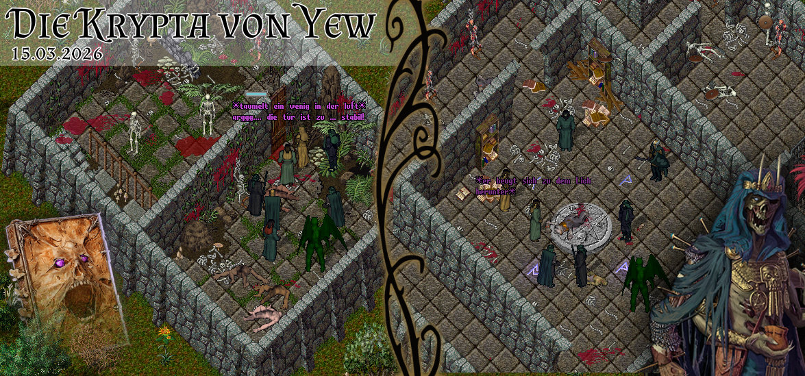 Eine Gruppe Elfen hatte sich gesammelt. Erfahrene Schützen der Wachenden zumeist - wie es wohl jeder der Anwesenden erwartet hatte. Doch auch andere hatten sich unter die Mutigen gesellt, nicht zuletzt der kristallene Gargyl. E'lessar sah zwischen den Anwesenden umher. Manche, wie der Klingentänzer Are'vin waren ruhig, vorbereitet auf einen Konflikt. Ein Tor in der Wirklichkeit später stand die winzige Armee im Schatten von wilden Eichen, die den Blick freigaben auf das erste der Gebäude. Toter, dunkler Stein. Mehr notdürftig als kunstvoll verziert mit Säulen und Bögen, grob zusammengefügt an vielen Stellen. Schlammfarbenes Moos, Bruchlinien in den Steinen und verschliffene Reliefs zeugten davon, dass diese Bauten älter waren als alle hier versammelten Elfen zusammengenommen. Eintritt in die DunkelheitDer Eingang in die Krypten war wohl verborgen - mit elfischen Zeichen und in elfischer Sprache geschrieben. Was die Erbauer wohl damit bezwecken wollen? Die Hallen waren lang und gewunden. Wenige Meter unter dem Waldboden zogen sich die fast verdunkelten Hallen über Meilen durch die Erde. Doch dies waren keine Hallen der Totenruhe. In jedem Raum, an jedem langen Flur waren die Toten auferstanden. Zerfallene Skelette, die noch eine rostige Waffe umklammerten, in feinste Seide gehüllte Mumien. Aber auch Wesen, die hier nie zur Ruhe gelegt wurden. In Kniehohem, stinkenden Wasser krochen verweste Ratten ihnen entgegen. Monstren aus Knochen und Fleisch zusammengesetzt von unheiliger Magie. An vielen Stellen waren verformte Wurzeln durch die Wände gebrochen, peitschend, suchend nach warmem Blut. Um tiefer vorzudringen, zum ehemaligen Herzen der Krypta erwhrten sich die Elfen zweier untoter Magier im Besitz von fein verzierten Silberschlüsseln. Ein nekromantisches Zauberbuch erregte das Missfallen der Elfen, und E'lessar nahm es an sich - später sollte Ostens Macht es zerschmettern. Das Unheiligtum KaltivelsDann waren sie weit genug vorgedrungen. Ein machtvoller Lich, so verwest dass man nicht einmal erahnen konnte ob er im Leben ein Mensch oder ein Elf war stellte sich ihnen mit grünen Flammen und Heeren von Skeletten entgegen. Und dieser Untote erhob sich - wieder und wieder. Kein Zauber der Magier, kein Pfeil der Schützen hielt ihn am Boden. Und dann fand Ya'ranel das Tagebuch im Stapel von lästerlichen Manuskripten und dunklen Ritualen. Ein Lich, der nicht nur einen Teil seiner Macht in ein Gefäß, ein Phylakterium gebannt hatte, sondern gleich vierfach Frevel an der eigenen Seele begangen hatte? Die Elfen zauderten - was für ein Frevel gegen Ostens Geschenk, was für ein Verbrechen auf dem Boden des Zauberwalds. Die FleischbestieDoch das unheilige Zauberbuch - war dies bereits ein Viertel der Lösung, diesem Lich ein Ende zu bereiten? E'lessar setzte an, um den Elfen Hoffnung zu geben, doch Kaltivel hatte noch eine letzte Schrecklichkeit für die Elfen angedacht. Knochen, Fleisch, Blut und Eingeweide formten sich zu einem Brocken aus ekelhaftem Unleben. Aus Dutzenden Mündern brabbelte das Wesen vom Ende der Elfen, halb verrottete Arme griffen nach den Elfen. Was nun ausbrach, war weniger ein Kampf als ein verzweifelter Versuch, sich dem Ansturm aus Fleisch und Tod zu erwehren. Blasen gefüllt mit übelriechenden Flüssigkeiten platzten auf, und dann traf einer der Elfen das Zentrum des Wesens. Zeitgleich schlossen sich alle Münder, schlossen sich alle Augen. Und es zerplatzte. Die Anwesenden waren beschmiert mit dem, was einst lebende Wesen waren, und alles was den Streitern blieb war der Rückzug. E'lessar verband mit seiner Magie die Krypta und Yew. Ira und Are'vin geleiteten die Elfen durch das Tor. Yaranel und Yllaria halfen Be'ryll den Weg zu finden. NachspielDer Sieg über den Lich hatte sich kaum wie einer angefühlt, dachte E'lessar bei sich. Elend und triefend waren die Elfen nach Yew zurückgekehrt, der Schatten des Untodes vermindert, aber nicht gebannt. Der Endirô hatte mehr als eine Stunde damit verbracht, einen beträchtlichen Teil seiner Magie in Schutzzaubern um das Buch zu bannen. Und doch fühlte sich allein die Nähe des Buches noch falsch, schmutzig an. So nahm er Yllarias Angebot gern an. Er griff ihre Hand und die Magie trug sie weit in den Norden, wo die Bäume des Zauberwalds schroffen Bergen Platz machten. Diese Berge waren durchzogen von unregelmäßigen Höhlen, an den meisten Stellen so eng mit Stalagmiten durchsetzt, dass ein Durchkommen fast unmöglich war. Zielstrebig suchte E'lessar eine dieser Höhlen auf, und legte das Buch dort in einer Felsspalte ab. Wortlos teilte er wieder seine Sicht auf das mandra mit ihr, zunächst wirre Wirbel aus Farbe und Formen, bis er ihre Wahrnehmung sanft lenkte. "Diese Magie bewirkt dreierlei, Yllaria. Diese Struktur, die einem Lotos gleicht, macht es dem mandra anderer schwerer, die Zauber zu erkennen - so wird es dem Lich schwerfallen, das Buch selbst zu finden.